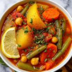 This hearty vegan stew is packed with a variety of fresh vegetables and chickpeas, simmered to perfection in a flavorful blend of herbs and spices. It offers a nutritious and comforting meal that is both satisfying and wholesome, perfect for any season.