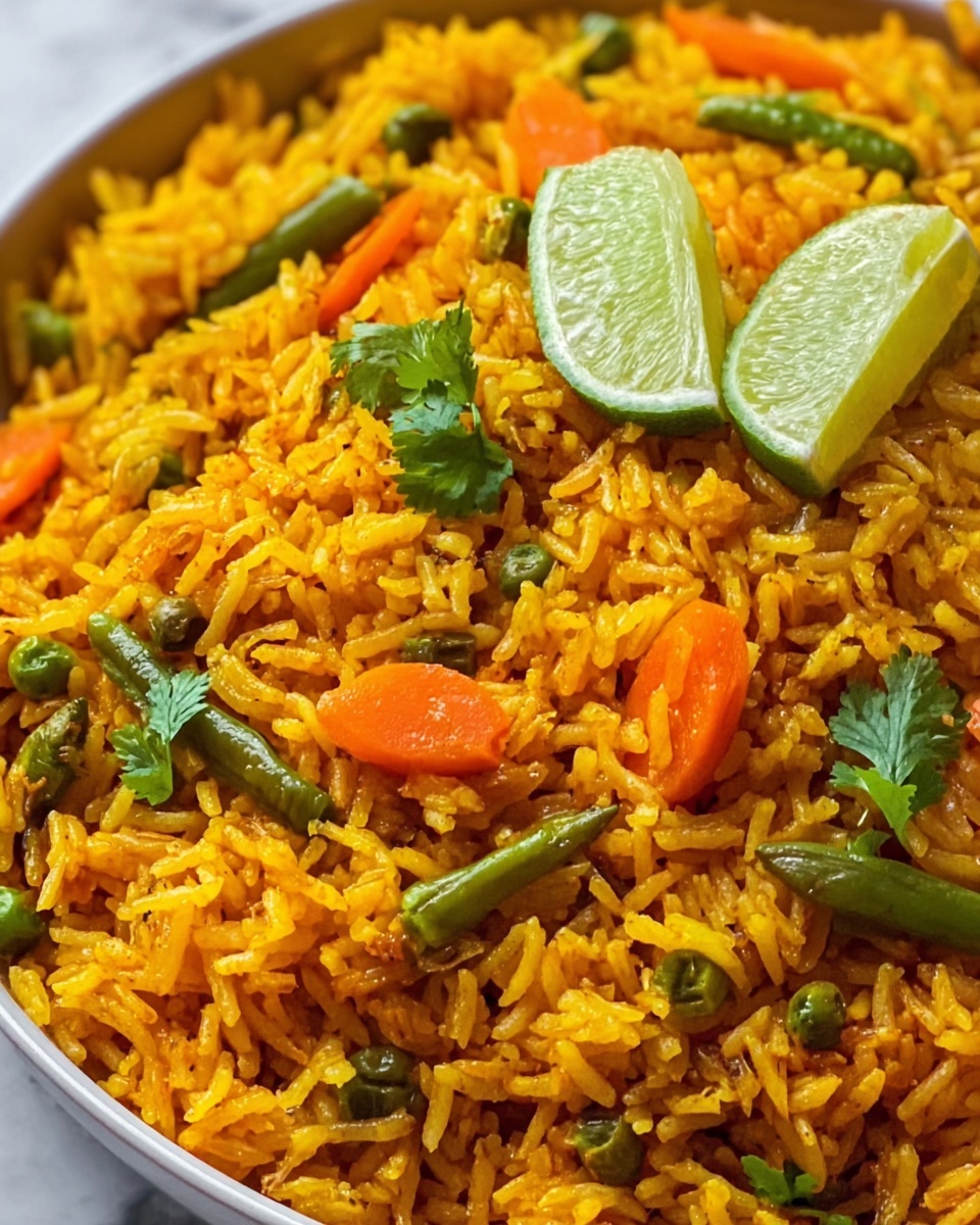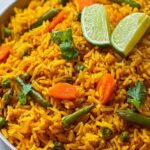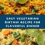 This flavorful Vegetarian Biryani recipe combines aromatic basmati rice with a medley of sautéed vegetables and fragrant spices, layered and cooked to perfection. Ideal for a comforting and satisfying meal, this biryani features traditional spices like cardamom, cinnamon, and saffron complemented by fresh herbs and optional garnishes, making it a delicious and colorful dish suitable for vegetarians.