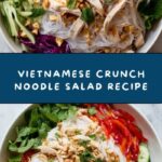 This Vietnamese Crunch Noodle Salad is a refreshing and vibrant dish featuring tender shredded chicken, delicate rice vermicelli noodles, and a colorful medley of fresh vegetables and herbs. Tossed in a tangy and slightly sweet dressing made with fish sauce, lime juice, and brown sugar, this salad offers a perfect balance of savory, sweetness, and freshness. Topped with crunchy roasted peanuts and optional fried shallots, it creates a delightful contrast in textures. Ideal for a light lunch or dinner, this salad is quick to prepare yet packed with authentic Vietnamese flavors.