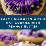7. Freeze Before Adding Chocolate: Immediately after baking, transfer the cookie tray to the freezer for 10 minutes to cool. This step helps prevent the chocolate toppings from melting when you press the Hershey’s Hugs or Kisses onto each cookie to complete the witch hat look.
